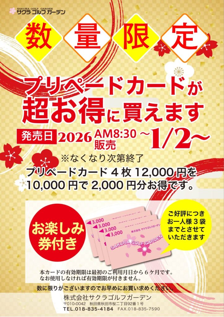 感謝を込めて、令和8年1月2日からお得なプリペードカード発売致します。